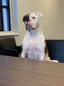 In 2018, Theodore Bear (aka Teddy or Teddy Bear), an American Bulldog joined the Fleischut Family and became the second member of COGI’s K-9 Crew. The original intention was for Teddy to be a family pet, however after a few visits to the office with his big brother, Boo Boo, it was quickly seen that Teddy would fit right in. Different from Boo Boo, Teddy has a much more outgoing personality and insists on being the center of attention at all times. He has a way of making you forget your troubles because he insists that you focus on him and his needs for scratches, rubs, and sometimes just holding his paw.